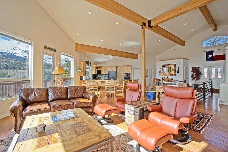 Designed to capture the essence of mountain living, every aspect of this home is crafted to maximize the breathtaking views of the surrounding San Juan and Cimarron Mountains. The exquisite great rooms are adorned with a fireplace upstairs and woodburner downstairs and offer direct access to rich new Trex decks  overlooking the San Juans. There are luxurious bedrooms with elegant en-suite baths-one with steam. Every detail of this mountain home exudes sophistication and comfort.